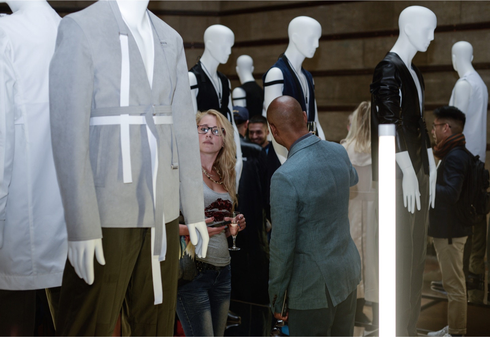 The event was a collaboration by Bonaveri with British menswear designer, Lee Roach. Lee Roach introduced his collection using the new Noble mannequin as static catwalk installation, allowing guests to interact and view the collection close up.